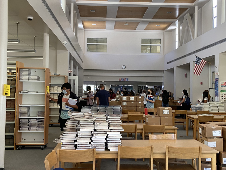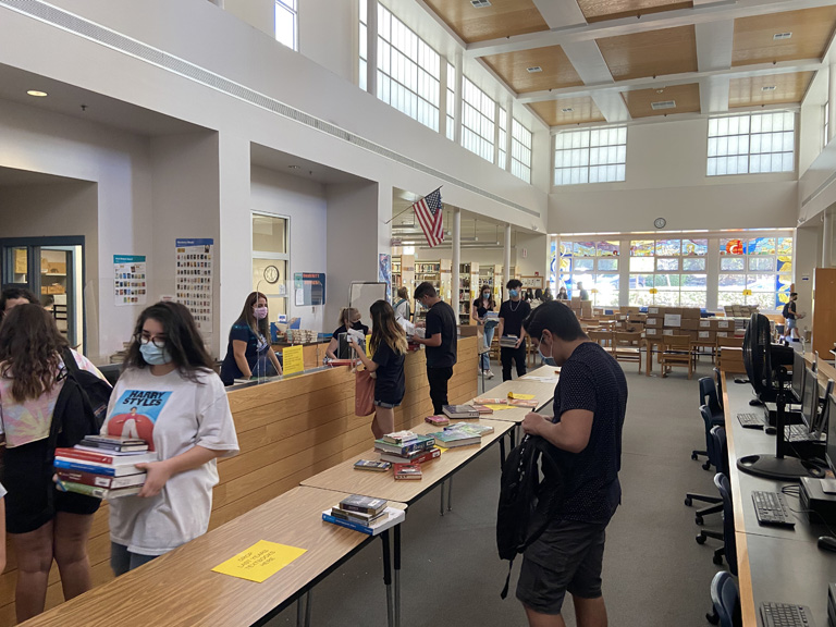 It was back-to-school book pickup this week for Crescenta Valley High School students who observed COVID-19 requirements of social distancing and the wearing of face coverings.