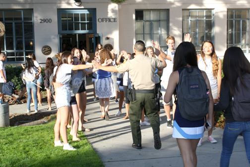 At Crescenta Valley High School, it was high fives from ASB [Associated Student Body] members as the students walked into the front entrance.