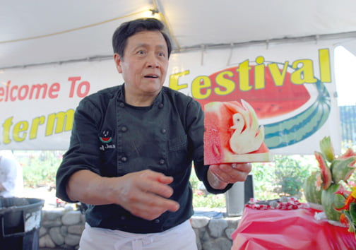 Celebrity Chef Joseph Poon, a spokesperson for the National Watermelon Promotion Board, serves up a carved treat.