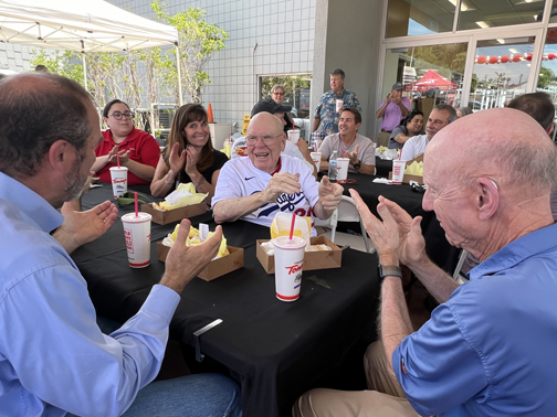 One example of the relationship between the Smith family and the community could be seen on Aug. 7 when Bob Smith Toyota celebrated not only three decades on Foothill but also Mike Smith’s 80th birthday. Not only family members but customers, friends and reps from Toyota crowded the showroom at 3333 Foothill Blvd.