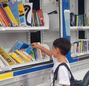 “As a kid, I remember I didn’t go to the library until I was in high school. I didn’t even know there was such a thing. But then after that, I developed an appreciation for what a library is – I take this book home and take it with me and then bring it back? That’s a totally different concept! So, for us, it’s providing students and families with access to books that fit their interests, getting them excited to read,” he said.