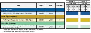 During the construction period, detours, intermittent lane closures and traffic delays are expected on the following streets: