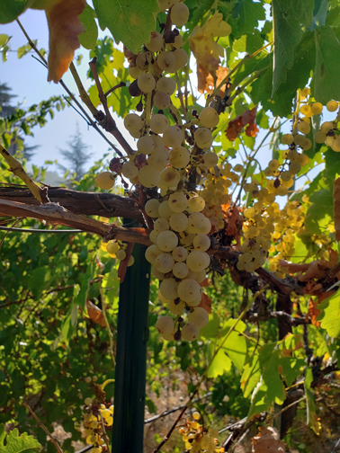 Stuart Byles is the main caretaker of these vines and has worked tirelessly to protect his grapes from a host of pests, including bees and birds, and the heat of the sun. He even came by the vineyard with an air horn the night before harvesting to scare off any bears that hoped to get a tasty treat. While some of his crop has dried out or has been eaten by critters, Byles’ hard work paid off and he was able to harvest a number of bunches on Sunday.