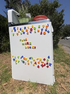 Unfortunately, the Little Free Library also caught the eyes of less well-meaning people. Freeman set the stove out on a Friday. By Saturday morning, everything on top of the stove was gone. Throughout the day the magnets disappeared. At one point a person opened the doors, emptied out the plastic box protecting the books and took the box, leaving the books behind.