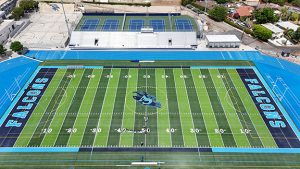 “Honestly, they are super excited,” said Principal Christine Benitez of how the students are feeling about the completion of construction. “They love [the track, field and courts] and love being back on the field.” She added she has spoken to some of the football, track and lacrosse players who are “giddy” to play on the new field.