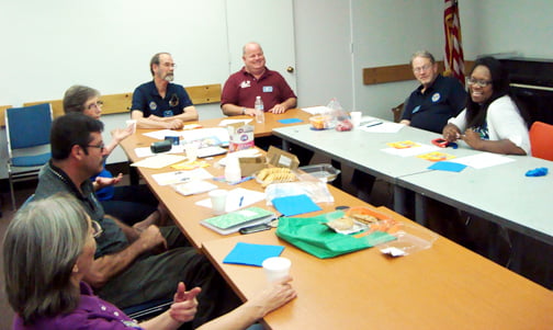 Lovette Panthier (far forward, right) of the Dept. of Children & Family Services addresses members of the Crescenta-Cañada Lions Club, explaining how their fundraising efforts have helped foster children.