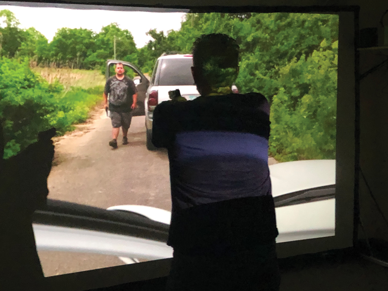 The man in the simulation stepped out of the vehicle with a gun in his hand. The scenario then showed the man, who was obviously distraught, stating things like “She should have never done that to me.”
