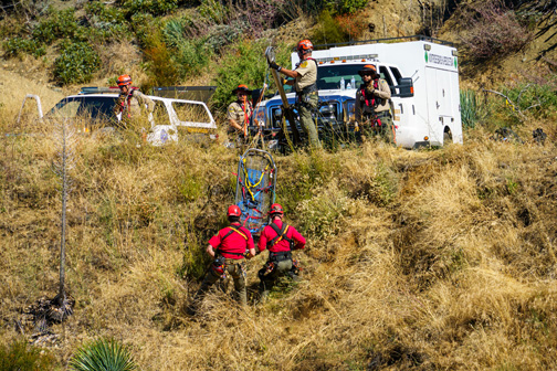 The scenario was an accident that involved multiple vehicles that had gone over the side of a cliff in the ANF. When members arrive they heard screaming from over the side and began to work together to assess and rescue.