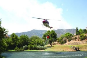 Due in part to the far-reaching damage of the Station Fire, which burned over 160,000 acres in the Angeles National Forest, the U.S. Forest Service changed its ban on night flights. Since then the LACoFD has increased its air operations and now has available five Sikorsky S-70 Firehawks, five Bell 412 helicopters and the recently added Boeing Chinook CH-47 [known as Helitanker 55]. On Wednesday, two super scoopers the department leases annually from Quebec were added to the department’s stable.
