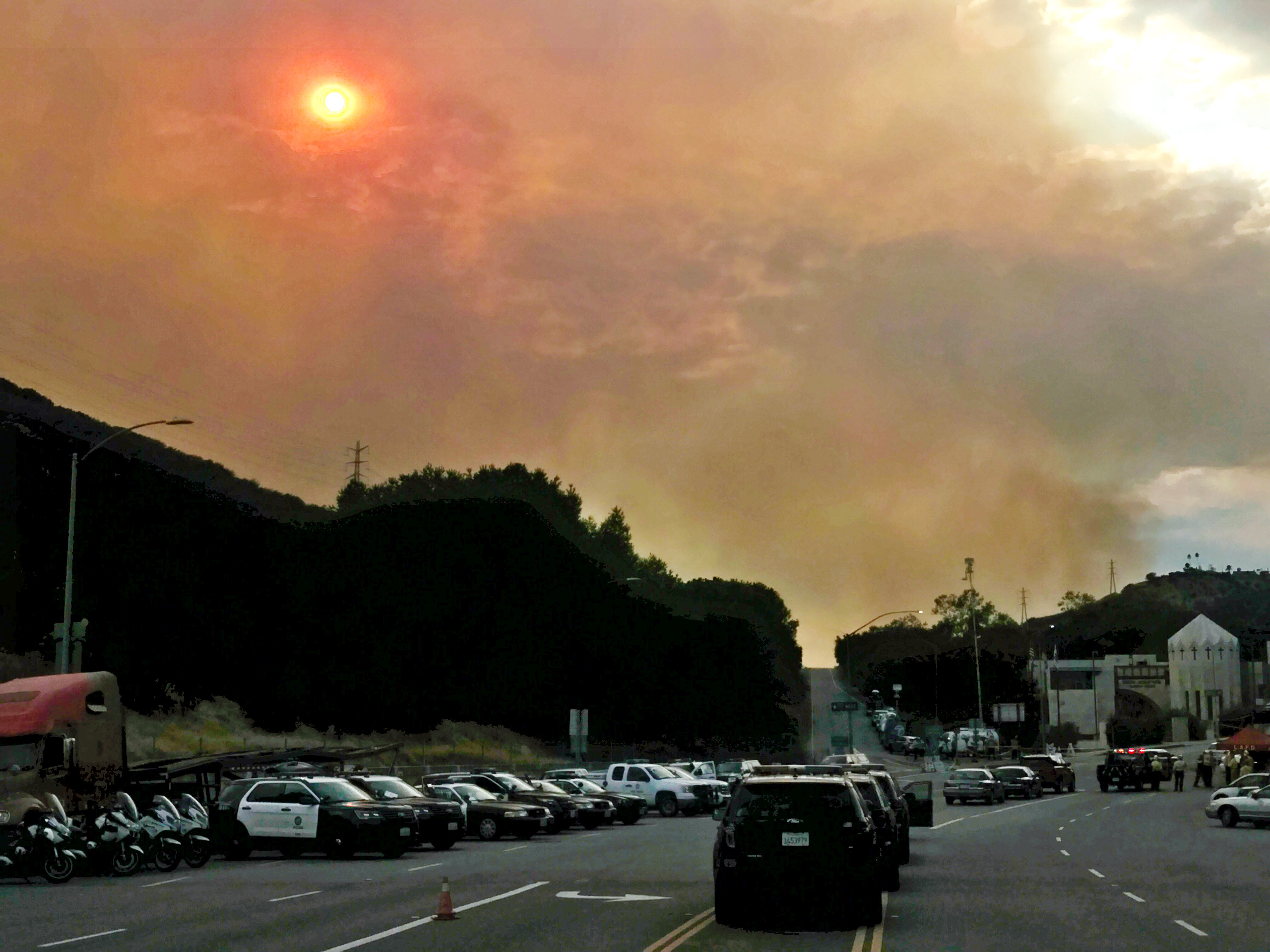 LAFD now has over 260 firefighters on scene in addition to a significant number from assisting agencies (Verdugo, ANF, LACoFD, Pasadena, Burbank and Glendale). Current temp is 106d with winds at 11 mph. Most of LAFD ground resources are dedicated to structural defense and tractor units working to create breaks and stop the fire from moving to the Burbank side of the canyon.