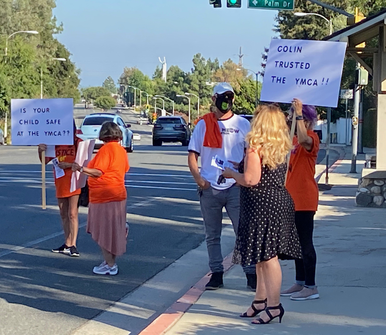 On Monday afternoon there was a sea of orange in front of the Crescenta-Cañada YMCA on Foothill Boulevard. Supporters of Colin Jacobs were dressed in orange shirts with the words “Justice for Colin” written on them. They lined both sides of the boulevard waving signs and receiving honks of support from many of those driving by.