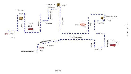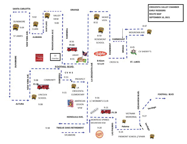 “The motorcade starts at 8:42 a.m. from Ralph’s parking lot. It passes by five fire stations, three convalescent homes, two grocery stores, a hospital and thirteen schools within La Crescenta, Montrose and La Cañada,” said Dwight Sityar, one of the organizers of the event.