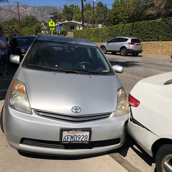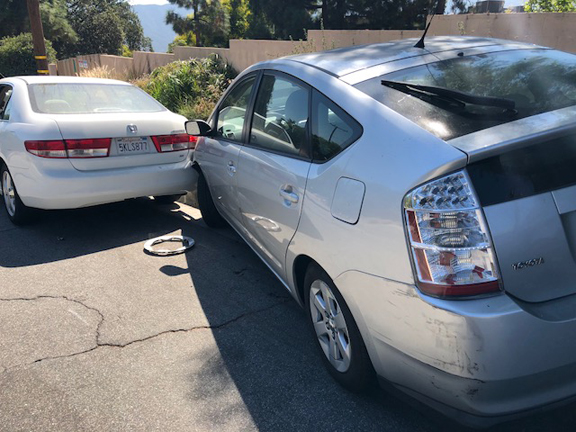 Both were parked on Rosemont Avenue north of Rosemont Middle School. It appears that one of the cars was side-swiped, which pushed it into the car in front of it and onto the sidewalk. Both cars were owned by the teachers.