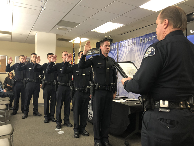 On Sept. 12, Glendale inducted six officers, including a canine for its K-9 Unit, at an event held at the Glendale Police Dept.