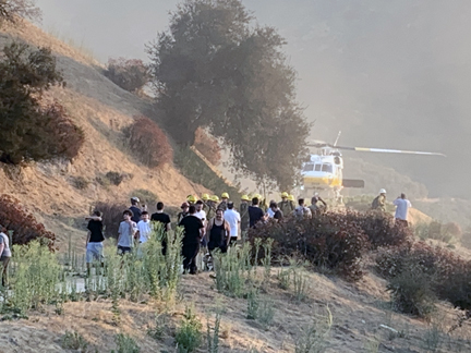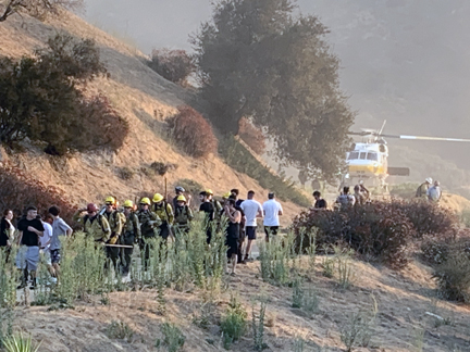 There were reports of a second fire near the former Verdugo Hills Golf Course; however, LA City Fire found no evidence of a second fire. As of 6:35 p.m., the fire that is in the area of the original fire at 9323 Rexford has burned 2-3 acres and firefighters have stopped all forward progress of it.