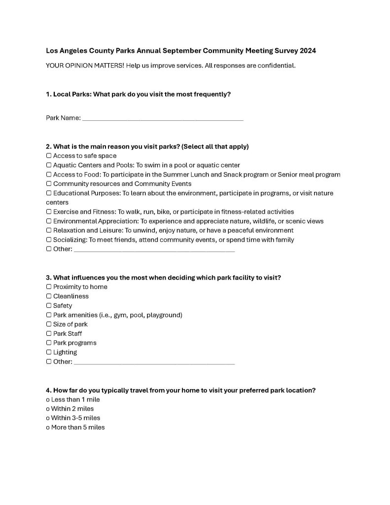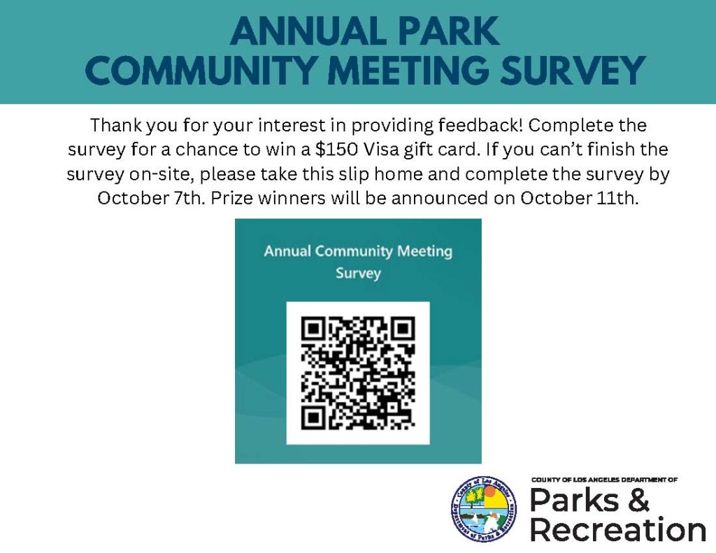 The park managers emphasized the importance of completing the annual survey. This will be the best way to let the Los Angeles Board of Supervisors and the County of Los Angeles Dept. of Parks and Recreation know what the community wants offered at their parks.