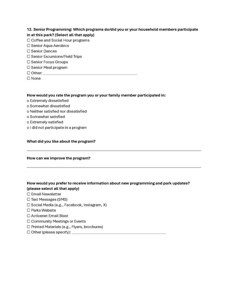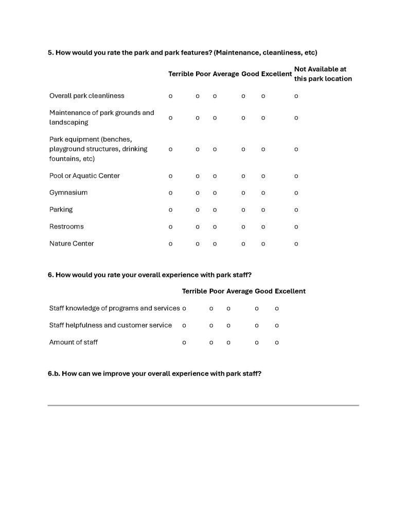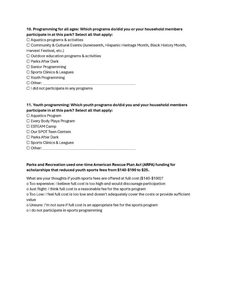 Park representatives told the audience they agreed with many of the comments but urged them to share their concerns on the annual survey, which is the best way to expand existing programs and create new programs.