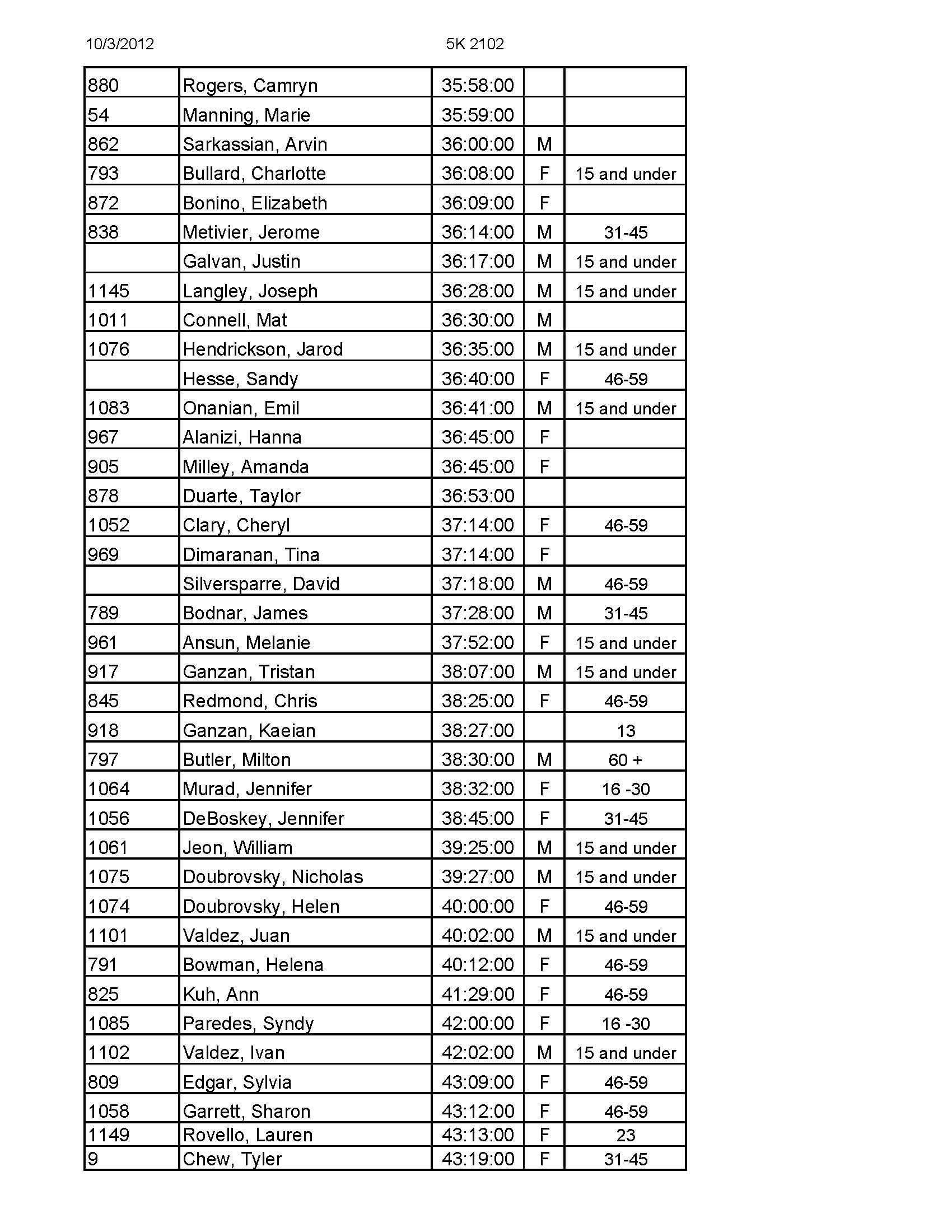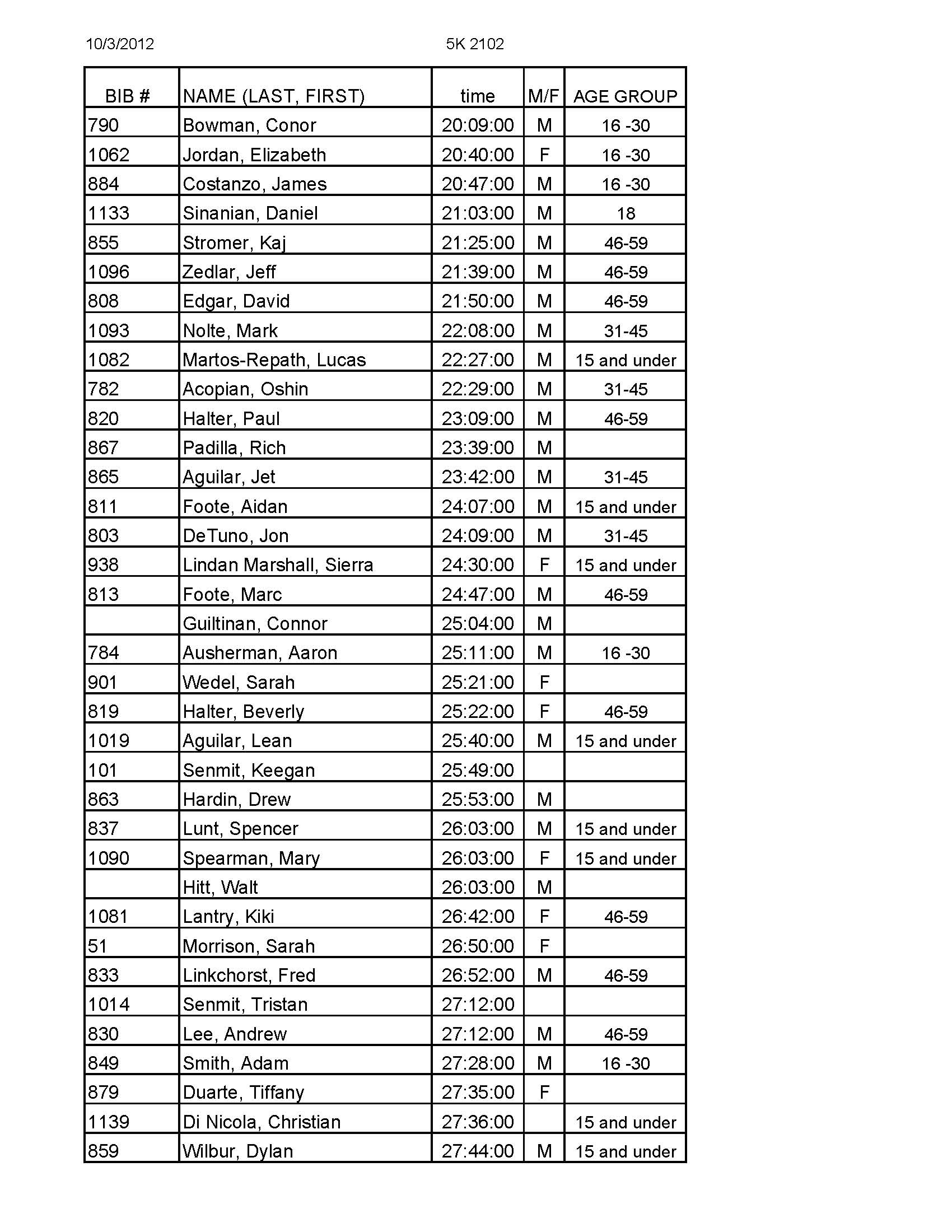 Share on Facebook Follow on Facebook Add to Google+ Connect on Linked in Subscribe by Email Print This Post Click on individual Race Result page to see in larger format. Results found at www.cvchamber.org/5K CV Chamber of Commerce Race Results added by CV Weekly on October 4, 2012View all posts by CV Weekly →