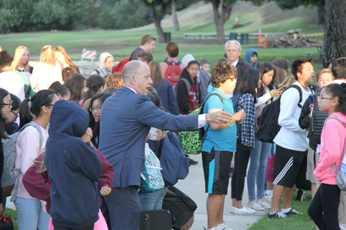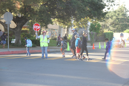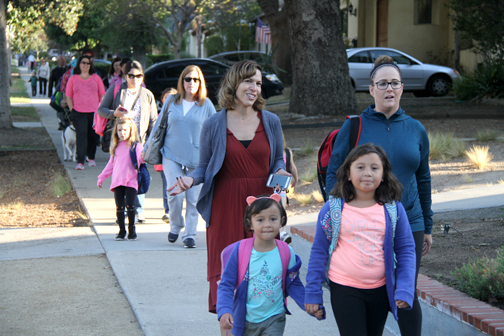 All elementary schools in the Crescenta Valley area and Rosemont Middle School participated in the event, most walking in groups after gathering at various locations near each school. Glendale police officers, Los Angeles Sheriffs Dept. deputies and California Highway Patrol officers were out in force to make sure pedestrians were safe.