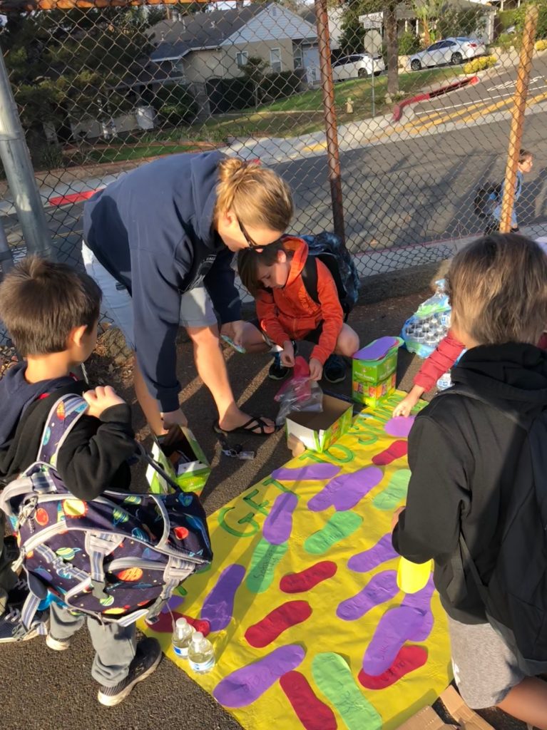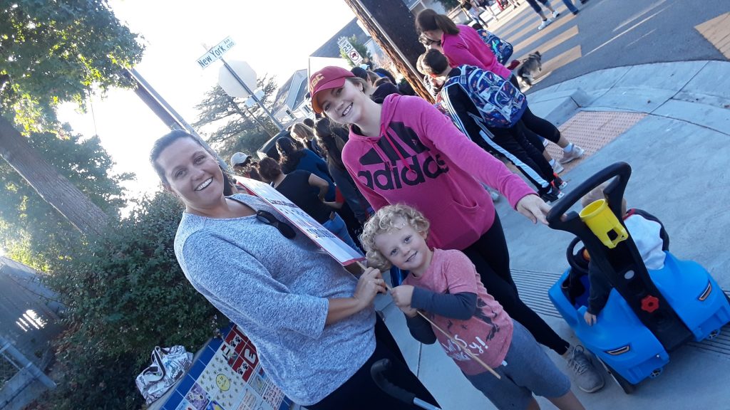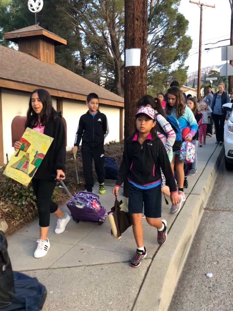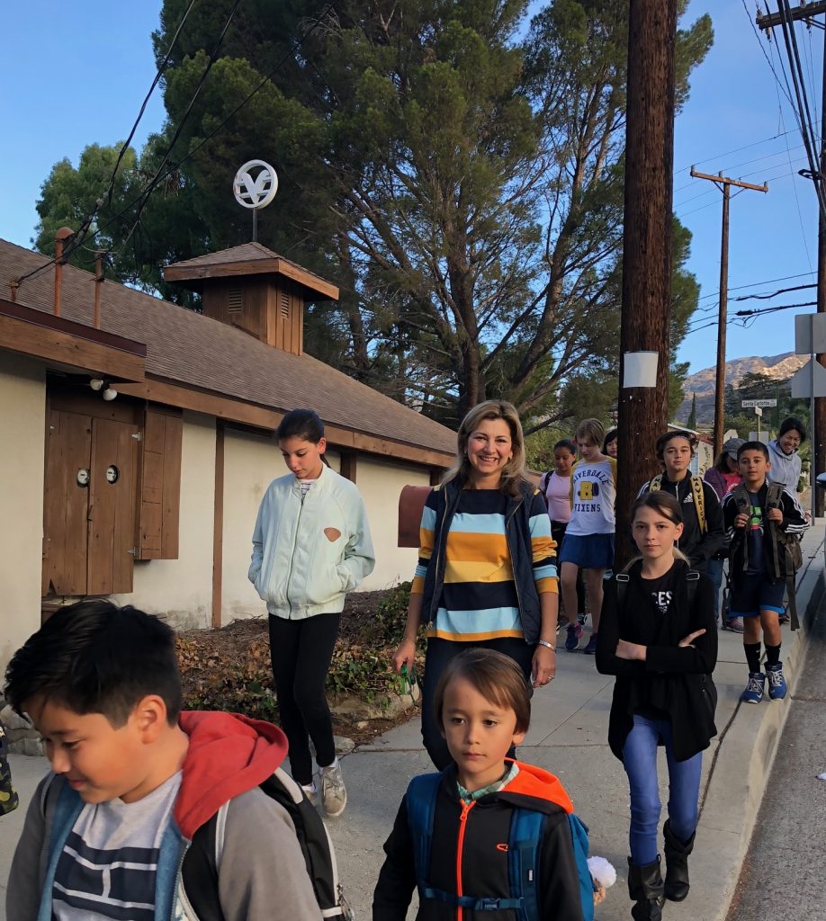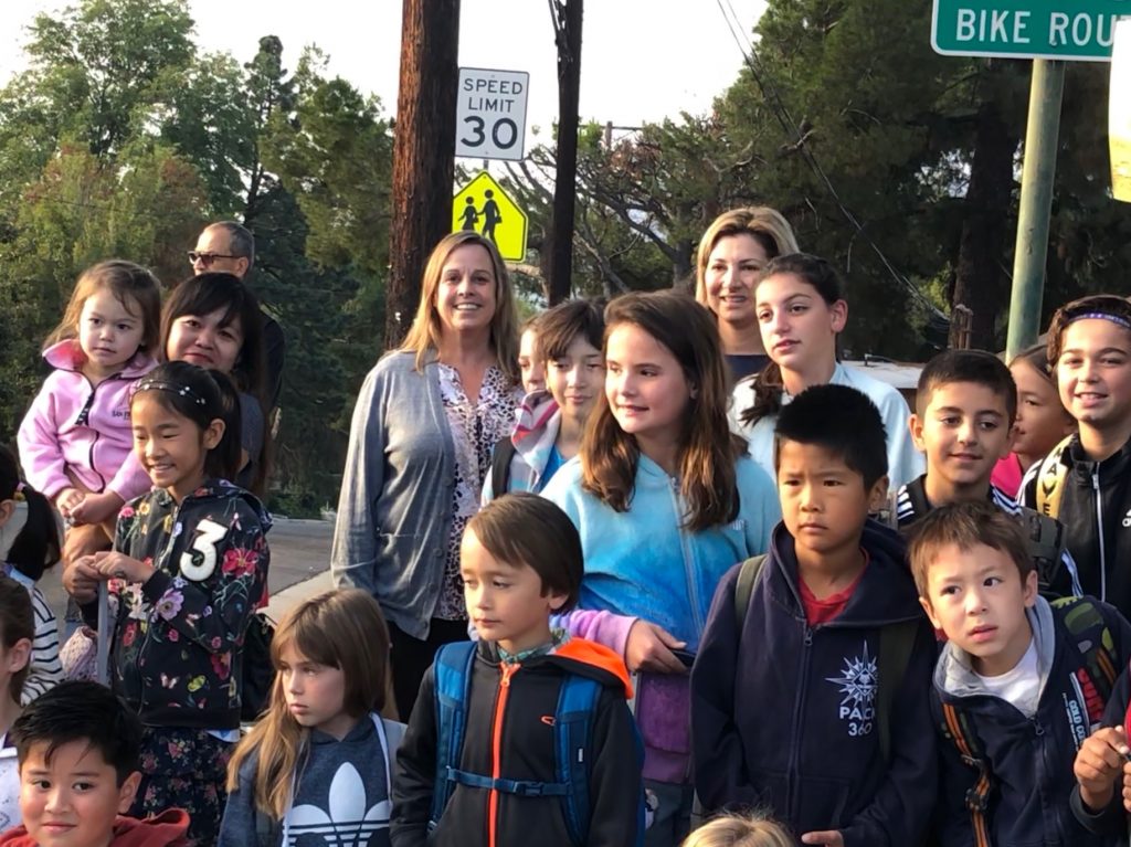 Administrators from GUSD and Monte Vista Elementary Principal Suzanne Risse joined over 50 kids and parents at Two Strike Park then walked down the hill to school.