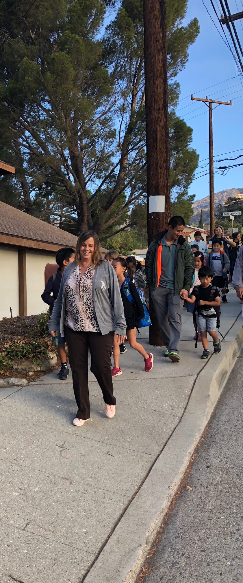 Administrators from GUSD and Monte Vista Elementary Principal Suzanne Risse joined over 50 kids and parents at Two Strike Park then walked down the hill to school.