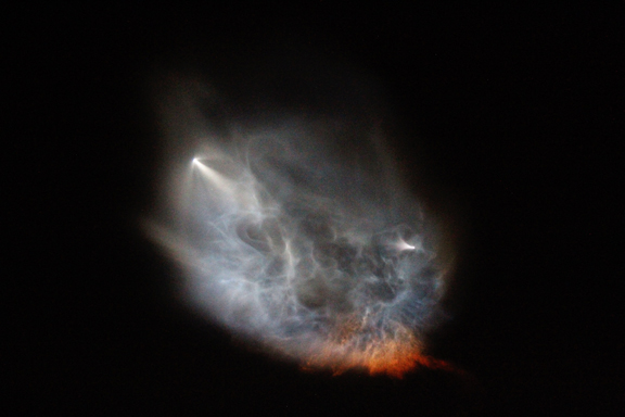 During the annual chili cook-off at the Light on the Corner Church in Montrose, the evening ground to a halt when one attendee made his way to the back of the festival, telling everyone to look up in the sky because SpaceX had just launched a rocket. A crowd gathered at the back of the parking lot to see the glowing cloud fill the sky. Even the festival’s live band got in on the act, changing the lyrics to popular songs to fit the rocket in the sky theme.