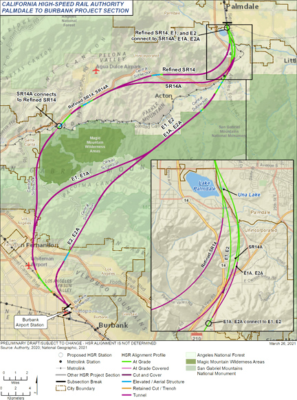 The California High-Speed Rail Authority (Authority) announced the availability of the Palmdale to Burbank Project Section Draft Environmental Impact Report/Environmental Impact Statement (EIR/EIS). The Draft EIR/EIS has been prepared and is being made available pursuant to both the California Environmental Quality Act (CEQA) and the National Environmental Policy Act (NEPA).
