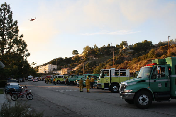 At 5:09 p.m. Los Angeles City Fire responded to a fire on Day Street, just west of Lowell Avenue between Cabanas and Pali avenues. Witnesses said the fire seemed to be moving quickly as it blazed up one of the few areas left untouched by the Station Fire.