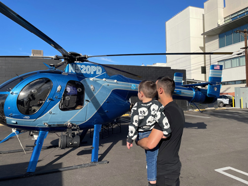 All types of trucks and vehicles from the City of Glendale’s Public Works were lined up to explore – from motorcycles to an airship. And of course the Glendale Fire Dept. was also well represented. Kids, like 2-year-old Arlo Foodman, wearing plastic fire helmets, climbed into the cab of the fire engines and pretended they were driving to an emergency.