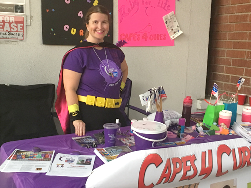 One day when she was outfitted in a cape at the hospital, a little boy and little girl – both battling terminal cancer – asked her why she was wearing the cape. She said it was because she was a superhero, then she let them wear it. They went around the room pretending to be superheroes. That is when she got the idea to create Capes 4 Cures. Her son was able to receive a transplant and is in good health now.