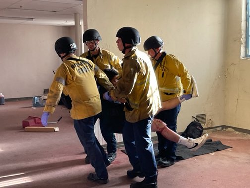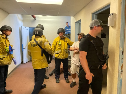 The success of the training depended on communication between fire team members as well as between fire and police personnel.