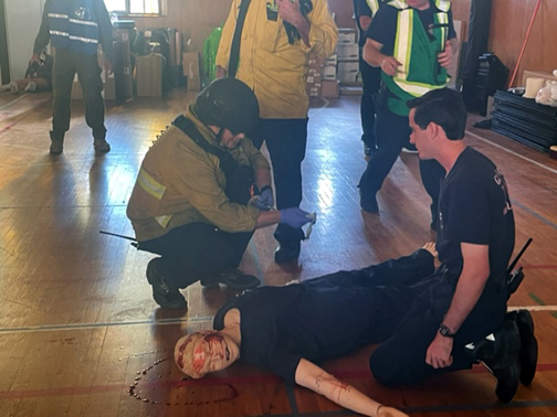 This reflects the real-life scenario: after a shooting is follow up to save the lives of the victims. Thursday’s scenario had police first enter to make certain danger was not immediate then fire personnel entered to triage and tend to the victims. They also worked to get the victims out of the area and to also establish a command center.