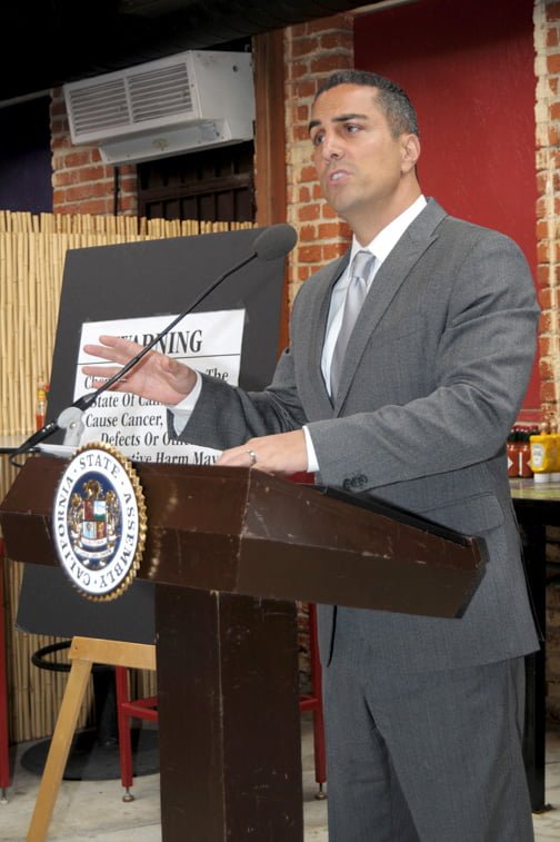 Assemblymember Mike Gatto, at The Coffee Table Bistro in Eagle Rock, explains the significance of AB 227.