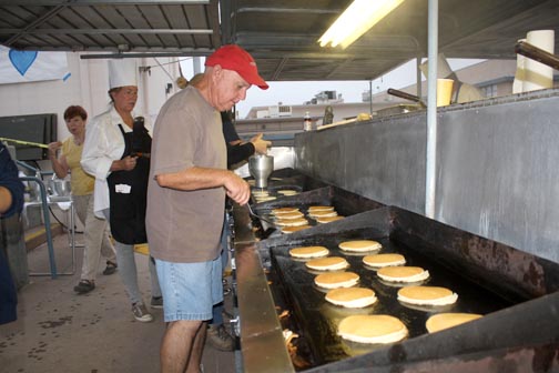 The annual event had a bit of a slow start as clouds and drizzle had the hungry breakfast crowd looking for shelter. But after the clouds parted, the rain stopped and the sun shone, famished patrons were ready to fill their stomachs.