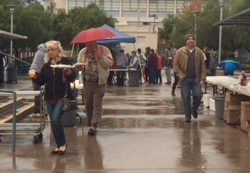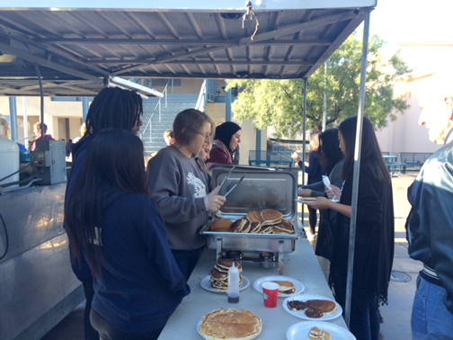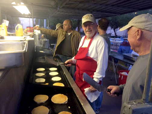 On Saturday the rain may have slowed the pancake flipping at the Crescenta Valley Town Council Annual Pancake Breakfast but it didn’t stop it.