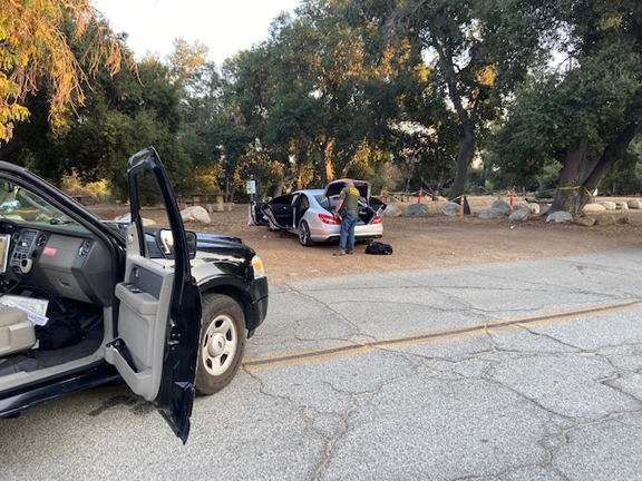 At approximately 3:40 p.m., La Cañada Flintridge Community Service Officer Viteri observed a vehicle matching the description parked in the upper parking lot of Hahamonga Park, near Foothill Boulevard and Oak Grove Drive. CSO Viteri notified deputies of the vehicle. Patrol units, including a reserve deputy, responded to the location and safely detained the suspect. In the suspect’s vehicle, a handgun and narcotics were located. Detectives from Crescenta Valley Station are investigating any link between the suspect and the recent crimes.