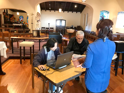 Cheryl Davis and CVTC member Mike Claessens check a voter in at St. Luke’s of the Mountains where CVTC elections were held this past weekend.