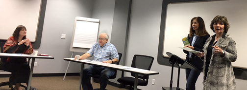 Seated MSPA board members Jeannie Bone and Ken Grayson listen to information presented by Tamara O’Connor from Community Arts Resources and Glendale City Councilmember Paula Devine.