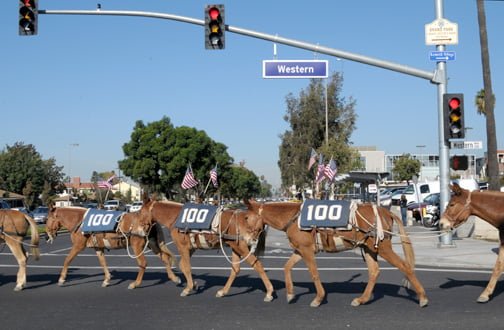 Residents who awoke Monday morning to see the sight at Glendale’s Brand Park may have done a double take. One hundred mules were gathered there on the final leg of a journey that began last month, ending at the Brand Library.