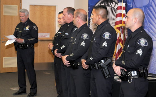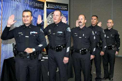 Glendale Police Chief Ron de Pompa welcomed the officers’ families to the afternoon ceremony and congratulated the recently promoted men after administering the oath.