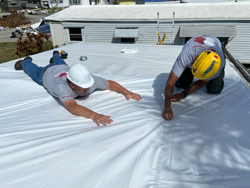 In Port Charlotte, Florida, Leum’s team had three main jobs: using chainsaws to help open up blocked areas; removing damaged ceiling tiles, flooring and other debris to prepare for construction companies; tarping to make certain roofs/windows were waterproof and protected. Leum was assigned to tarping.