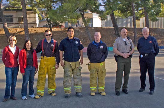 On Friday, Nov. 20, the Crescenta Valley Sheriff’s Station, Los Angeles County Fire Department, and Crescenta Valley Fire Safe Council were honored at Monte Vista Elementary School. Five hundred students, teachers and parents were present to honor these organizations for their work during the Station Fire earlier this year. Each organization was presented with a certificate during the school’s monthly flag ceremony. Participants pictured include (from left): Tracey Black, PTA VP; Stephanie Shintaku, PTA president; L.A. County Fire Department represented by Station 63 firefighters including Captain Dave Inman, L.A. County Sheriff’s Department represented by Deputy Jorge Valdivia, and the Crescenta Valley Fire Safe Council represented by Roger Young, president .