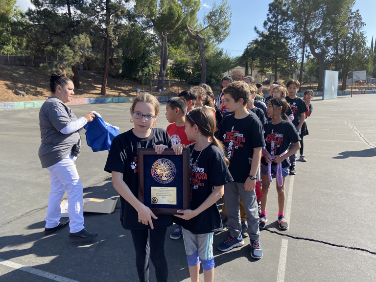 Being one of a small number of schools chosen was not lost on the students. Monte Vista Student Council member Ben Kim, a fourth grader, was one of the students who led visiting members of the Glendale Unified School District and parents and community members to the celebration on the school’s playground.