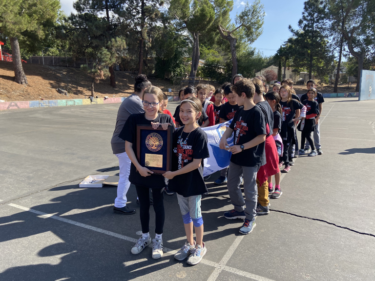 Fellow student council members Sophia Iknadossian, a fifth grader, and Daniel Kahdian, a sixth grader, were also part of the welcoming committee. Both students emphasized their school was were among a small number of schools that had been recognized with this honor.