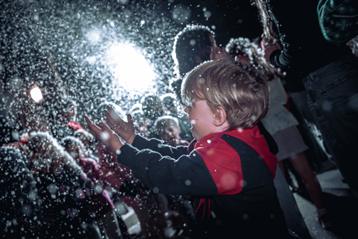 As soon as the tree was lit, Santa Claus patiently spoke to all of the little ones who wanted to share their thoughts on what they were wishing for this holiday season while bubble snow began to fall.
