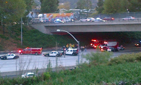 This afternoon around 4 p.m., CV sheriffs received a call from a passerby stating that they had witnessed someone jump from the 210 Freeway overpass at Ocean Boulevard. Deputies responded and found the male victim bleeding on the emergency lane of the Foothill Freeway westbound near the Ocean View onramp.