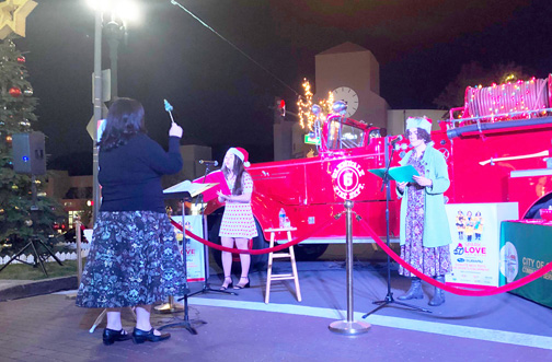 Soprano Lily Sumida and mezzo soprano Kate Banks from the Hummingbird Conservatory, under the direction of Tara Wallace, ushered in the holiday season during the White Friday tree lighting in the Montrose Shopping Park. The duo sang favorites, putting the crowd of between 350-400 people into a holiday mood. MSP executive director Dale Dawson took a moment to welcome everyone to the annual event, which was canceled last year due to the pandemic, highlighting several dignitaries present including Glendale mayor Paula Devine and Councilmember Ara Najarian. Montrose Shopping Park Assn. board member Gigi Garcia of It Takes A Village children’s boutique invited the crowd to return to the shopping park for holiday deals plus, beginning on Saturday and continuing weekends through Dec. 19, the chance to meet Santa Claus, ride a horse-drawn carriage up and down the avenue, enjoy live music and, on Saturdays, have the kids ride hand-led ponies.