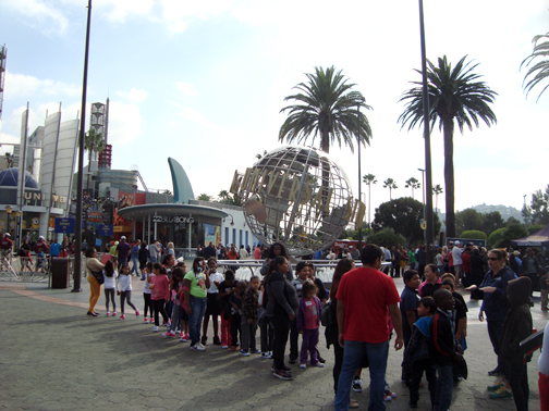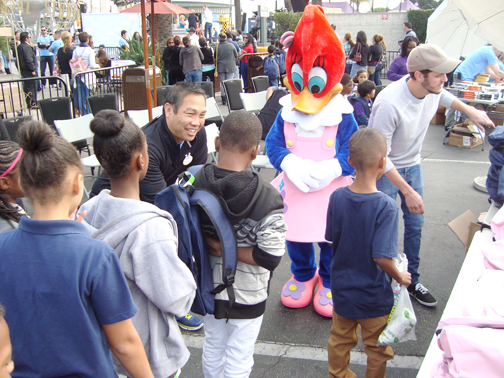 Children from schools across the L.A. area packed into Universal Studios on a recent Thursday morning, not only to enter the park and enjoy the attractions and rides, but also to receive much needed clothing and school supplies during the 10th annual Day of Giving. Nearly 250 students arrived at the park during the day and received donations of shoes, socks, jackets, backpacks, books and uniforms, as well as complimentary lunches and a free trip inside Universal Studios.