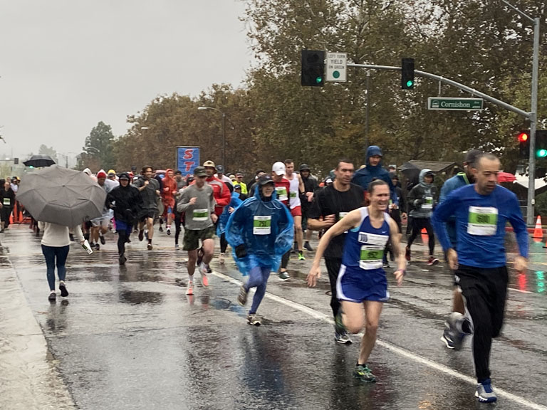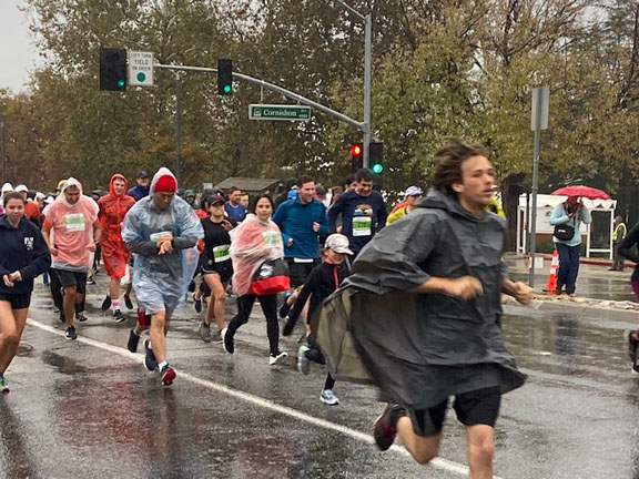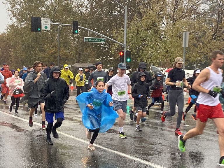 Runners who did not let cold weather and rain slow them down lined up on Foothill Boulevard on Thanksgiving morning in La Cañada for the annual Thanksgivings Day Run.
