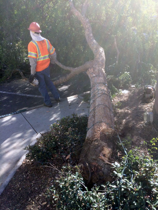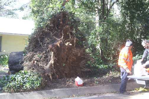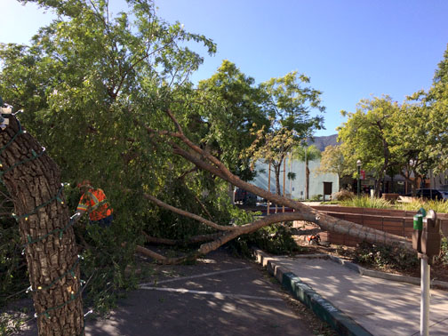 Last week’s windstorms did not affect SCE service too much with no reports of long-term outages, unlike a powerful windstorm in November 2011 that caused many SCE customers to be without electricity for weeks. The winds did down several trees in the area with one crushing a garage and vehicles. Wind gusts up to 35 mph caused a tree to topple in the 2300 block of Honolulu Avenue in the Montrose Shopping Park.